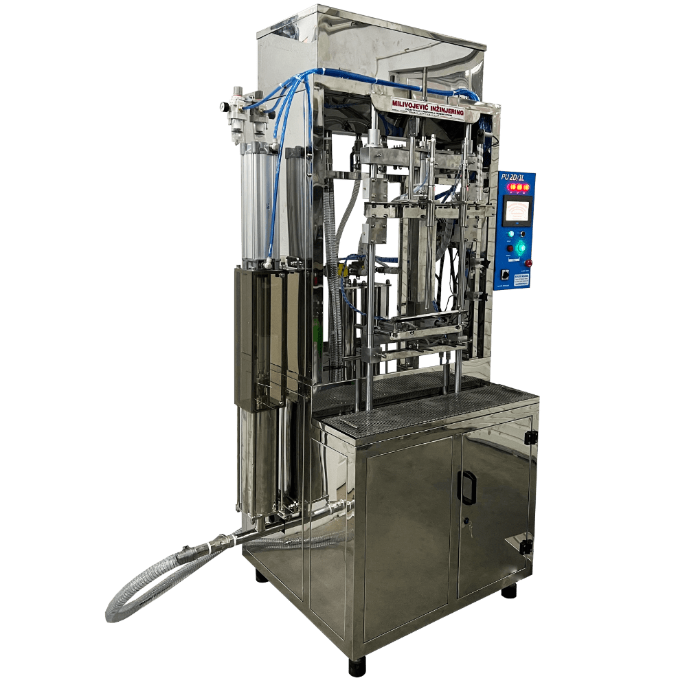 Automatska punilica  tip “PP 2D/1L” konstruisana je za punjenje boca I balona zapremine u opsegu od 0.4 do 5 litara.Brzo je prilagodljiva različitim oblicima I zapreminama boca  I balona,što je čini pogodnom za male serije I česte promene tipa ambalaže.