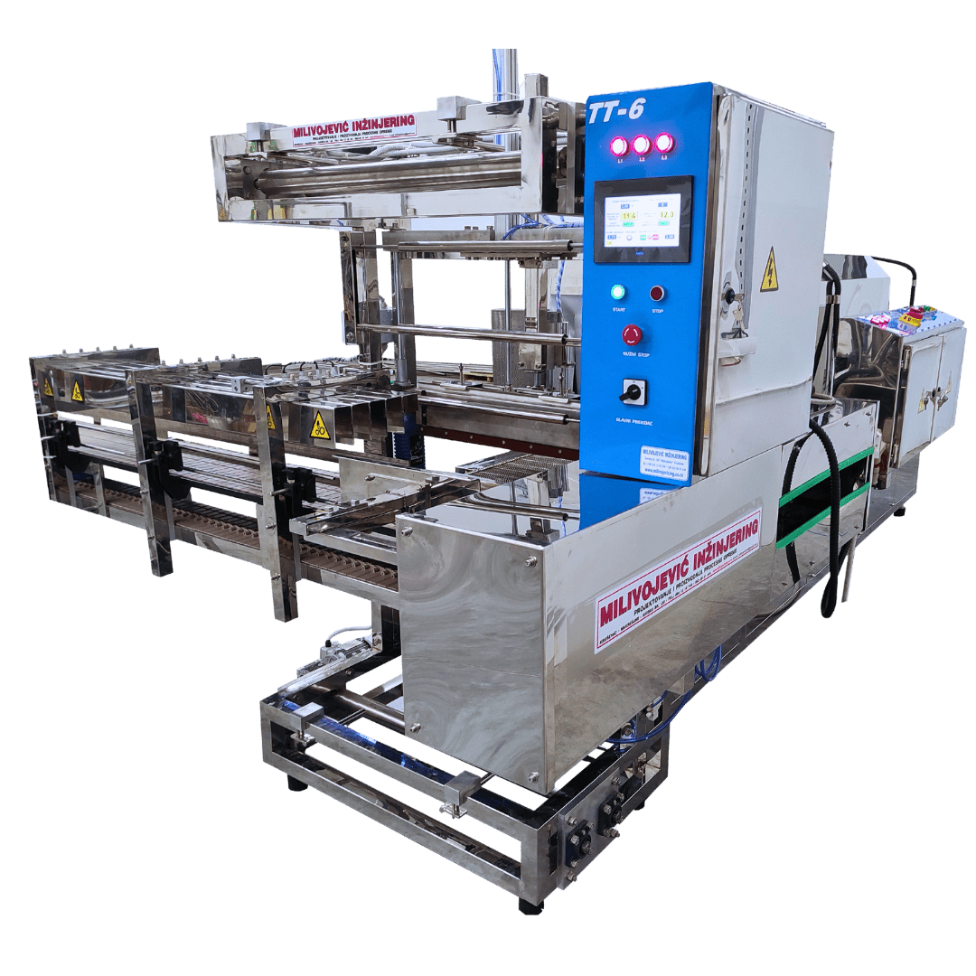 Termotunel sa automatskim upakivačem tipa “TT 6”, konstruisan je za rad u potpuno automatskom režimu, počev od transportovanja boca i balona do izlaska gotovih paketa na kraju procesa.